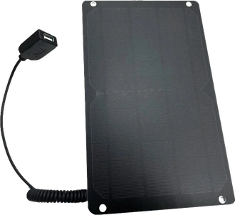 Постоянно подключенный к этой панели пауэрбанк способен за световой день накопить достаточное количество электроэнергии, необходимое для зарядки смартфона, навигатора, для вечернего освещения палатки и пр. Дождя и падения в пресную воду не боится. При отсутствии облачности и тени, легко заряжает телефон напрямую.